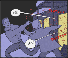 Finally I had to go, so I let fly a couple of volleys of beans at the glass door. Then Danny, who was up closer, threw his whole bag.