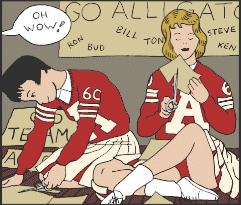 Karen Sanders was back there in a cheerleader outfit, and, man! we could see all the way up to her underpants. Holy Cow!