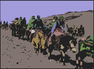 The rest of us rode on for the next five days into the heart of the mountains by the narrow stony tracks which are typical of old Tibet. By day we divided into several groups; each night we stopped in a village or monastery. Sometimes we had no guerrilla leaders with us. They came and went, keeping in touch with all the isolated bands who were living in the mountains, and we knew that we were surrounded by faithful determined men whom we never saw. Not all of them knew who they were defending. The first night after lodging at Ra-me, we stayed in a big village called Dophu Choekhor, where guerrillas are still keeping up a desperate fight against the Chinese invaders to this day. The whole village came out to welcome us, but most of them did not recognize me in the unfamiliar clothes I was wearing, nor did most of the monks in the neighboring monastery.