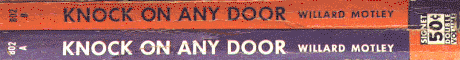 Signet brought out several fat 75-cent novels in the late fifties, which I devoured. They were to me the hottest thing in fiction, often war novels, or tough slum kid coming-of-age novels. Knock On Any Door was the first of the latter that I found and, again, it absolutely enthralled me. I read it five or six times - the story of Nick Romano who wanted to "Live fast, die young, and have a good-looking corpse." Interestingly enough the author, Willard Motley, was black, though his Italian-American anti-hero did not reflect it.