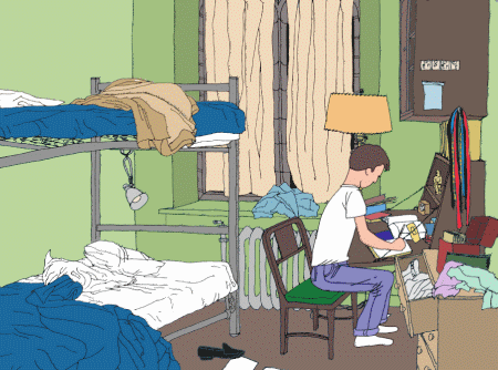 This morning, for a change, I really did not feel too bad when I woke up. Except for one fact. Goddam Lawrence had opened the living room windows to the fullest to get some "fresh air" and it was freezing cold. When the alarm went off at seven I got up and turned on the radiator and closed the windows. "Asshole," I told him. I got back in bed just to warm up. If it hadn't been so damn cold I wouldn't have missed breakfast. Slept through English. Howie and Bill and I went to lunch, and I decided to cut Philosophy. We came back, and I decided to reorganize my whole system.