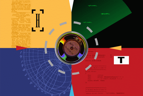 All four quadrants animate while the center (circular) element rapidly changes. The four small triangles move toward the center again and again.