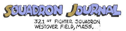 One day in the summer of 1996 I got a call from a woman named "Peanuts" Johnson, who told me that she had seen an article about Dad Rarey in the February, 1996, issue of Air Force Magazine. She had known my parents in the spring of '43 while my father was training at Westover Field, Massachusetts, when the newly fledged pilots got their P-47s. Her husband, Lester Johnson, had been commander of the training squadron that formed up. Capt. Johnson and my father had collaborated on an illustrated daybook of the squadron activities.Then she told me that she was going to send me this sketchbook that I didn't even know existed!