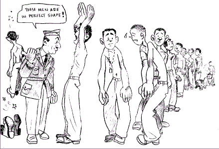 Damon Rarey: This drawing is not just a typical Rarey depiction of our country's fighting men, but also a sly poke at the wisdom of the Army brass.
