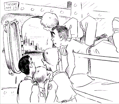 Jim Ashford: The trip to England on the Queen Elizabeth was at best interesting. There were over 15,000 troops on board. I was in what would normally be called a first-class cabin for two with private bath. There were 15 or 18 of us in the cabin in bunks stacked three high. You could take a bath if you didn't mind salt water. Still, it was a lot more comfortable than what the enlisted men had. Both the Queen Elizabeth and the Queen Mary made their Atlantic crossings at high speed without escorts. Obviously successful as neither was ever damaged by torpedoes during the war.