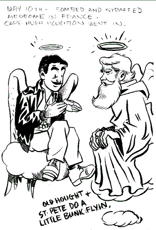 Nineteen aircraft on escort dive-bombing mission on Reims/Champagne airdrome led by Capt. Flavin. Squadron strafed airfield after it was dive bombed. Larsen and Putnam damaged a Ju-88 and a Do-217. Capt. Houghton hit by flak and was seen to crash on the airfield (I was on his wing, flying #3 position at the time)...following