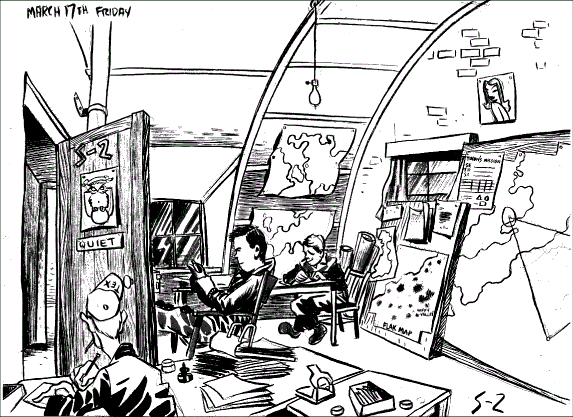 Note: The man in the lower left corner has "Tex" written on the bill of his hat. That identifies him as Andy Anderson, later to write a book-length account of his war-time exploits, "Blood, Sweat, and Fears," from which I've excerpted some commentary on the sketches. Andy has become a good friend. His reverence for the pilots of the 379th is unequalled.