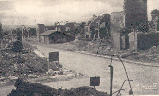 Villers-Bocage is a small Normandy town that was leveled as the Allies battled the Germans for control of France. Only one house from before the war still stands. Otherwise the town has been completely rebuilt. This is a photo from 1944 after the "Battle of Villers-Bocage." A mystery persists to this day: since the town was in the middle of a British Sector (off-limits to American soldiers and aircraft), why did my father's flight engage the enemy here? Doubtless in the confusion of combat such niceties are often not observed.